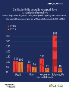 Tokom posljednje decenije, globalni troškovi tehnologija obnovljive energije dramatično su pali. Dok se trošak proizvodnje električne energije iz uglja gotovo nije promijenio (sa 111 na 102 USD po MWh), a cijene gasa su padale umjerenijim tempom, najveće promjene zabilježene su upravo kod obnovljivih izvora energije. Trošak energije iz vjetra na kopnu smanjen je sa 135 na 41 USD po MWh, dok je cijena solarne fotonaponske energije pala sa 359 na svega 40 USD po MWh. U prosjeku, obnovljivi izvori energije danas su zvanično jeftiniji od fosilnih goriva. Ovakav razvoj događaja iz temelja mijenja ono što je ekonomski moguće za regiju.